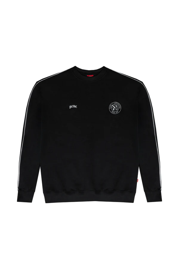 Moletom Crewneck oversized, combinando conforto e estilo. Modelagem relaxada com gola redonda e filete lateral branco, trazendo um toque diferenciado ao design clássico. Destaque para o patch bordado em um lado do peito e bordado no outro.